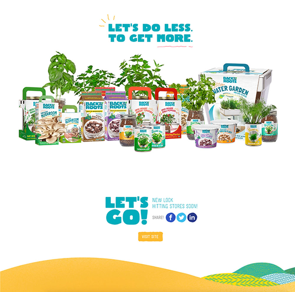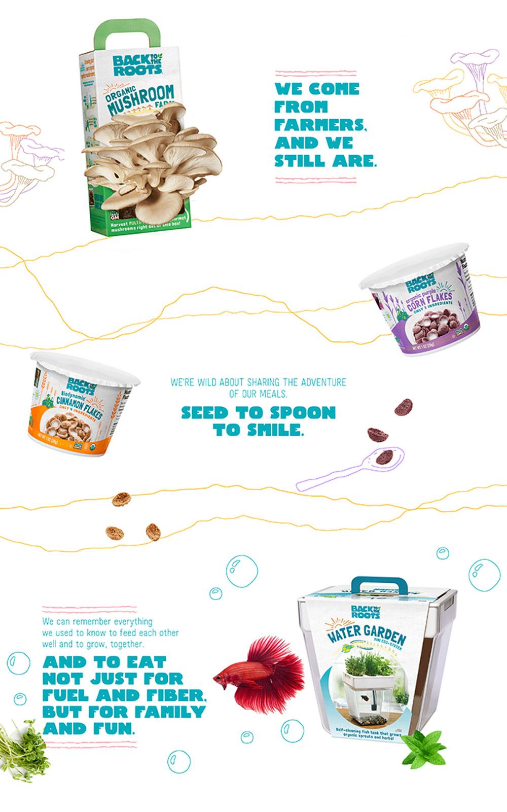 Back To The Roots is an Oakland startup focused on fresh organic food, grown at home instead of a lab. They needed a fun way to introduce their new branding direction to both consumers and partners. A microsite that would focus on their updated logo, brand colors and typography; while also calling out their new package designs. To keep the microsite fun and engaging, animations and doodles were used to help bring the brand manifesto to life.