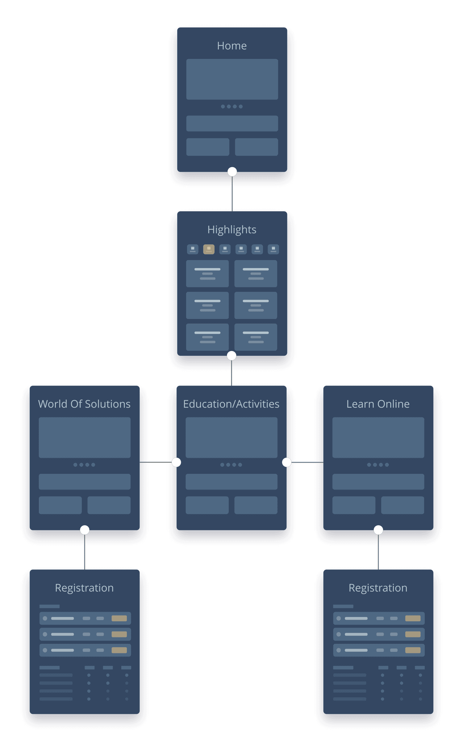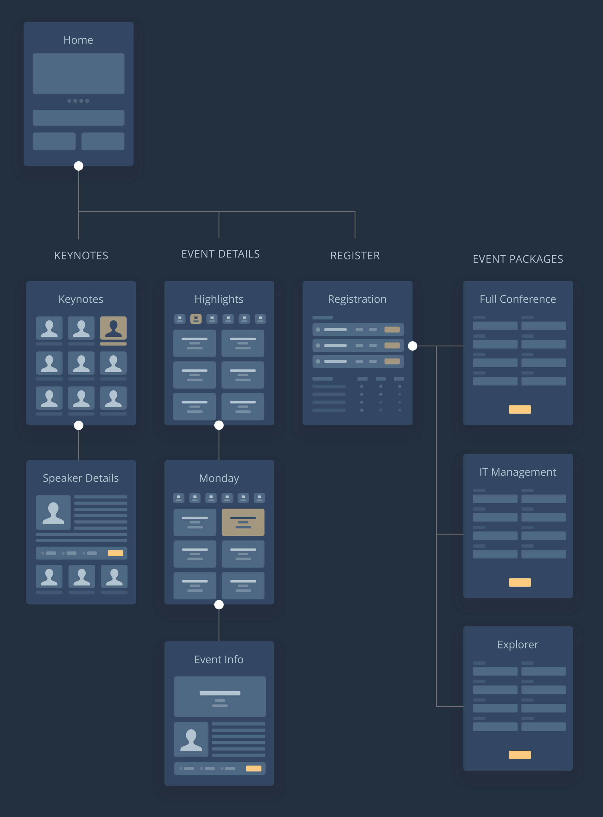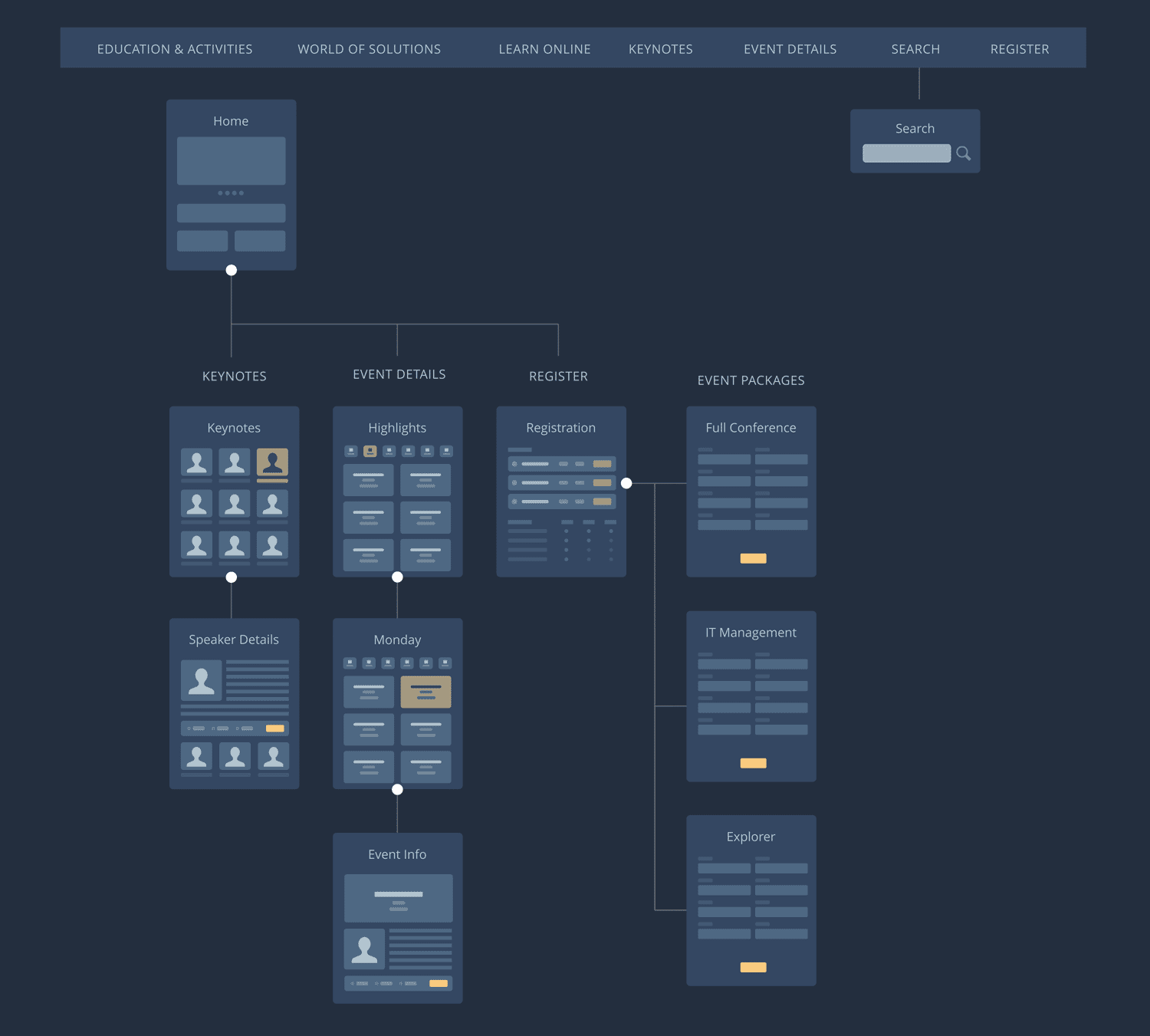 The updated site architecture was used to build a new set of wireframes. With this conference occurring every year, it would need a fresh look. This year would feature a modular design with an increased focus on user experience and mobile design.
